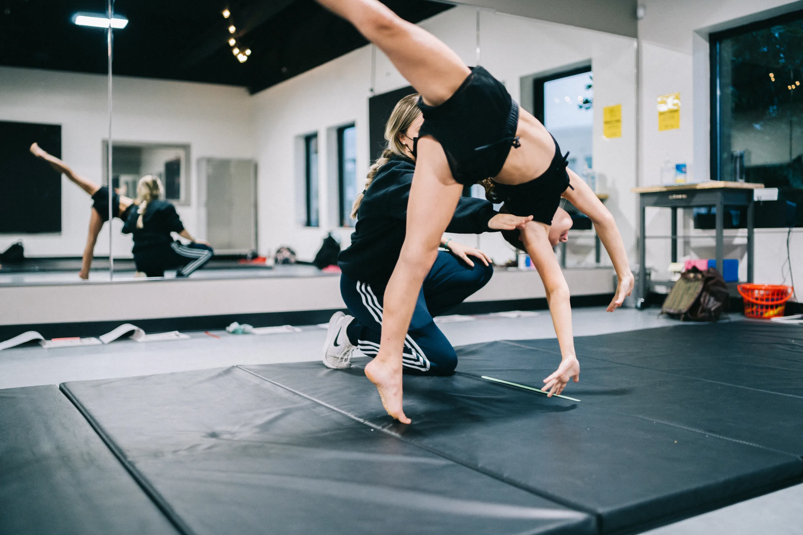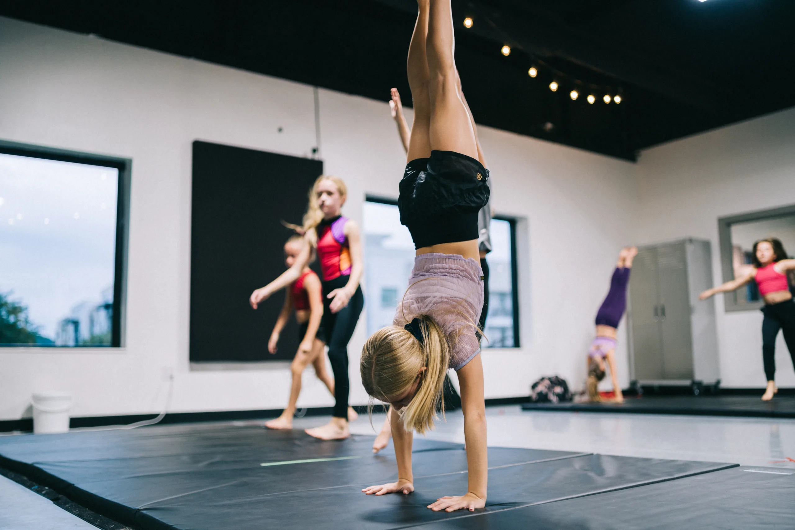 Acrobatics and tumbling have become a standard in the competitive dance world. At ROOTS we have a class that focuses primarily on the tricks and skills needed to keep up with the ever-advancing dance community.